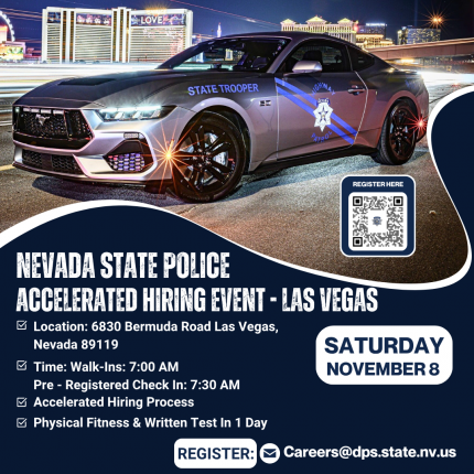DPS Officers perform a variety of law enforcement and public safety functions within the Department of Public Safety (DPS). Applicants must pass a written and physical fitness examination and demonstrate they have the ability to prepare to be a DPS Officer. Incumbents at this level are initially assigned to the Nevada P.O.S.T. academy where they are trained to perform law enforcement duties as well as other course work and physical training intended to provide the knowledge and skills to function as a DPS Officer. The instruction and training are provided in a formal classroom setting and in practical field exercises where Academy staff will review and evaluate each cadet's class participation, coursework, assignments, and written performance examinations. Successful completion of the training academy is mandatory for continued employment as a DPS Officer I; therefore, incumbents progress to the next level in the series upon successful completion of the law enforcement academy, meeting minimum qualifications, satisfactory performance and with the recommendation of the appointing authority.
